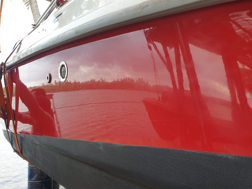 Complete hull coat with Micron Extra ( International Paint ) along with a cut, polish and a wax finishing.